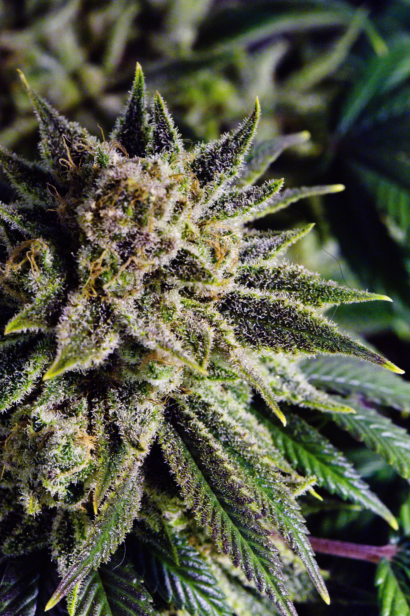 Plants grow tall and confident. Outdoors they can stretch up to about 6.5 feet. Buds grow large and dense. Resin piles up on the flowers until they look almost crystal coated. Green buds show subtle blue shades and bright amber hairs.